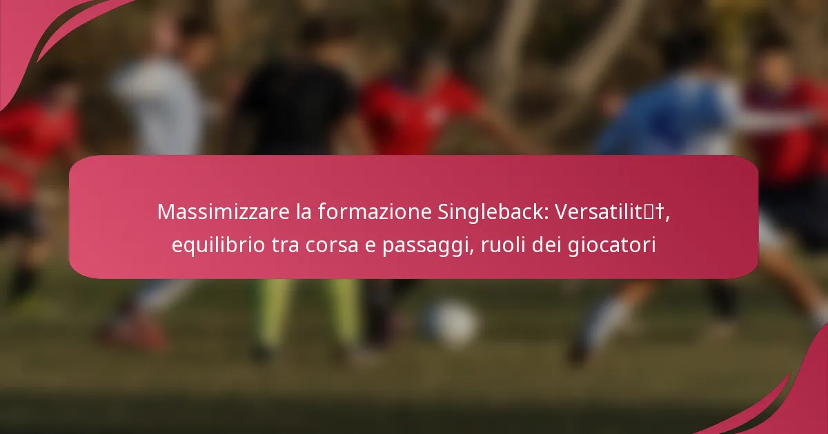 La formazione singleback può essere massimizzata per la versatilità adattando la sua struttura per supportare una strategia offensiva bilanciata che includa sia giocate di corsa che di passaggio. Questo approccio consente alle squadre di sfruttare le debolezze difensive mantenendo al contempo imprevedibilità attraverso ruoli e formazioni dei giocatori efficaci.