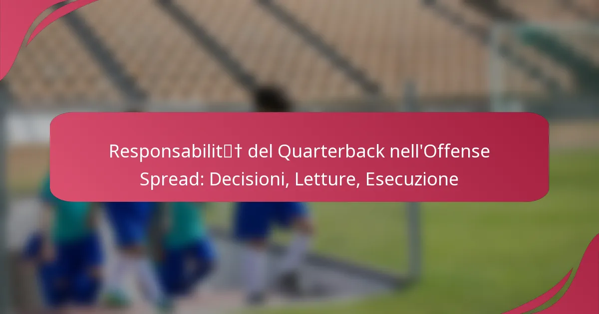 Le responsabilità principali di un quarterback in un attacco spread includono prendere decisioni rapide, leggere le difese ed eseguire le giocate in modo efficace. Questo schema offensivo enfatizza la velocità e lo spazio, richiedendo al quarterback di essere agile sia nel pensiero che nell’azione per massimizzare il potenziale offensivo.